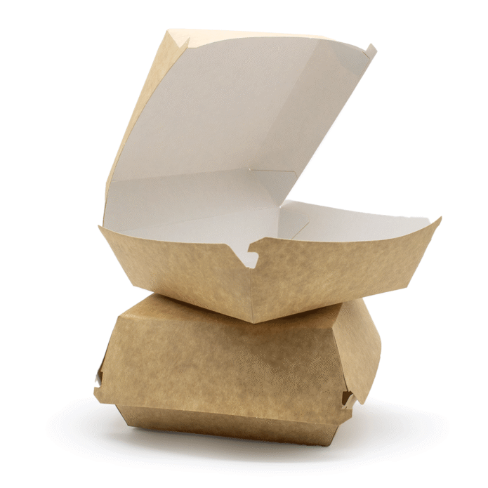Burgerboks fremstillet af brunt pap.